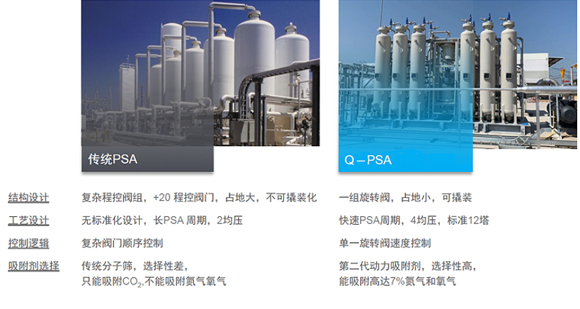 1、擁有專有的旋轉(zhuǎn)閥設(shè)計(jì),標(biāo)準(zhǔn)化12塔撬裝設(shè)計(jì),快速PSA周期,占地極小,僅為傳統(tǒng)PSA的四分之一。